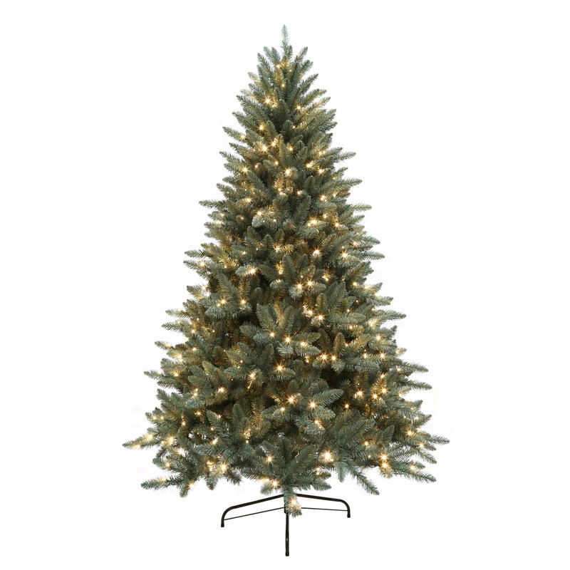 The artificial 7′ Forest Green Pine tree features an attractive array of branch tips. It is trimmed with 500 warm white LED pre-strung lights. It’s easy and fast to set with its non-removable hinged branch construction that goes into the perfect position for final fluffing and shaping.