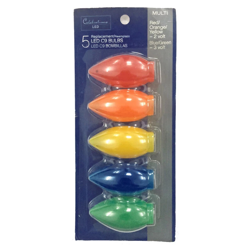 Brand new โจ Celebrations LED C9 Multicolored 5 ct Replacement Christmas Light Bulbs ๐