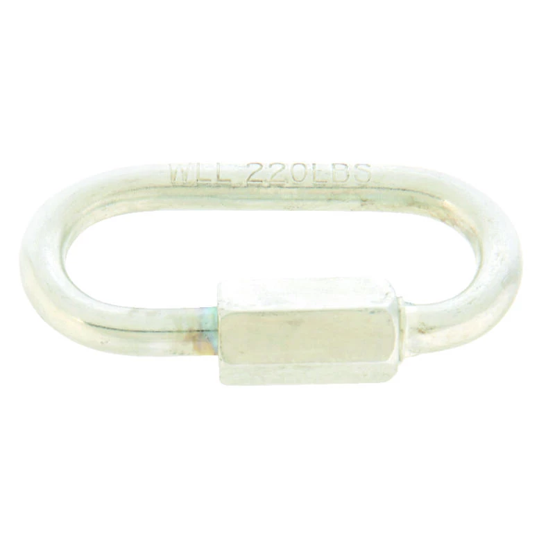 The quick link zinc plated finish packed loose with tag I dimension size equal to opening width x length. Do not exceed working load limit. Do not use for overhead lifting, to support human weight, for playground or athletic equipment or as a safety device. Do not use if visibly worn or distorted.