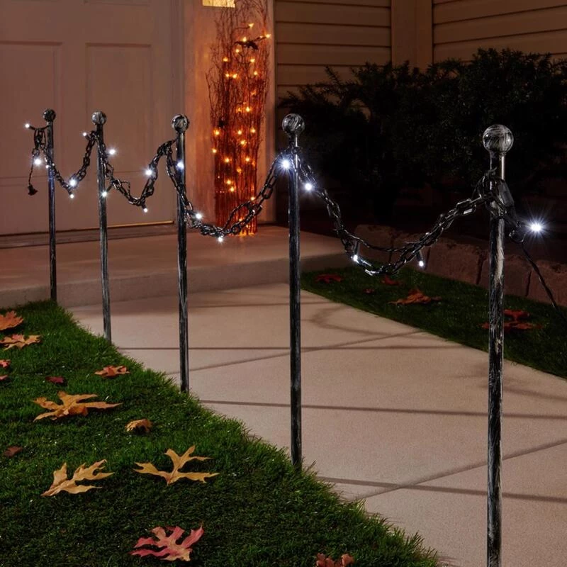 Make your home even more spooky with this 5 piece plastic look pole with lighted chain.