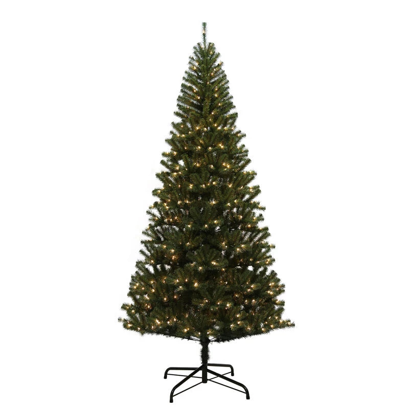 The artificial 9′ Monterey Pine tree features 1411 PVC branch tips. It is trimmed with 500 incandescent pre-strung white lights. It’s easy and fast to set with its non-removable hinged branch construction that goes into the perfect position for final fluffing and shaping.