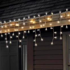 Best Sale 🔥 Celebrations LED Mini Clear/Warm White 100 ct Icicle Christmas Lights 5.67 ft. 🌟