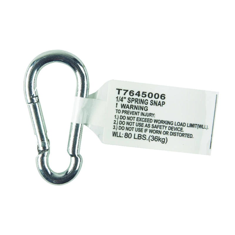 Spring snap link ideal for hanging keys and other utility items from belt. Fast and easy to connect and disconnect. Do not use to support human weight, for playground or athletic equipment, or a safety device.