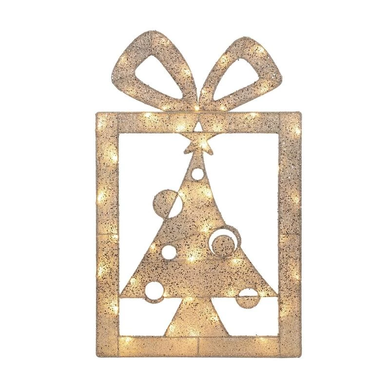 Easily decorate your yard for the holidays with this elegant light up 36 inch flat gold sisal gift box. Due to the flat nature, you can store it for the next year just as easily as it was to decorate with.