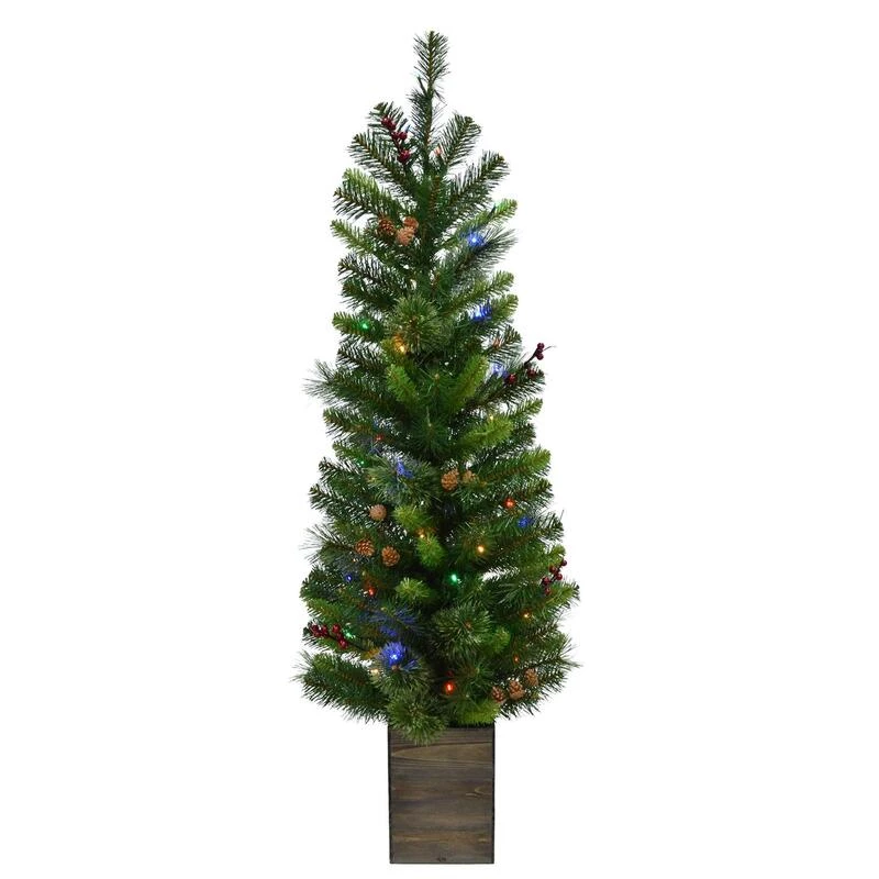 The charming four-foot height of this tree makes it perfect for brightly decorating your front walkway, front door, landing, foyer or any other small space.