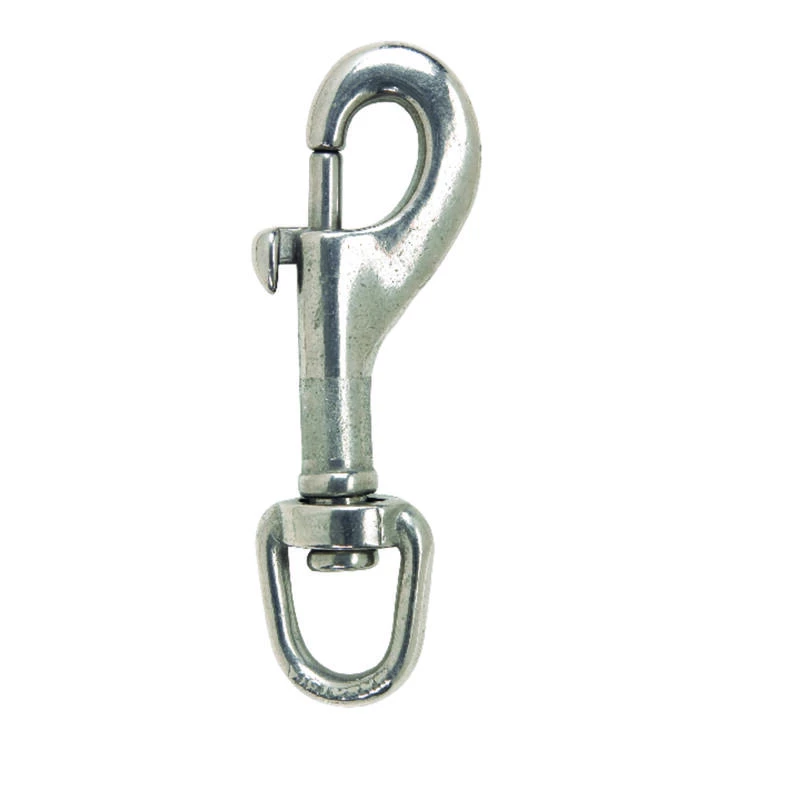 Swiveling, round eye bolt snap. Typically used for tarp covers, key rings, gate Closures, flagpoles and other home, farm, recreational. Do not use for overhead lifting or hoisting. Ideal for hanging keys and other utility items from belt. Fast and easy to connect and disconnect. Do not exceed the working load limit. Do not use for overhead lifting or hoisting. Do not use to support human weight, for playground or athletic equipment or as a safety device.