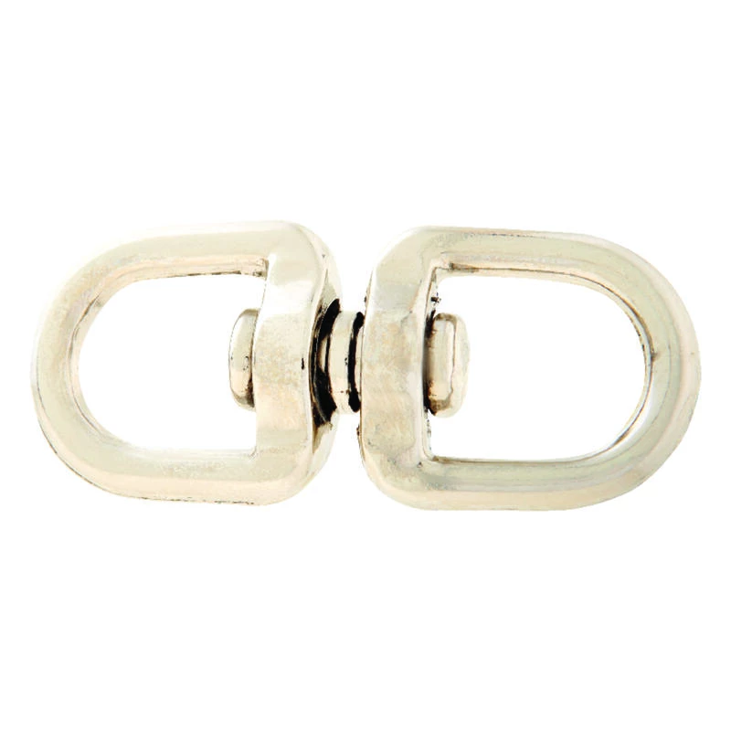 Round eye swivel used for connecting chain or rope. Swivel feature allows for less kinking or tangling of chain.